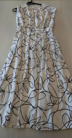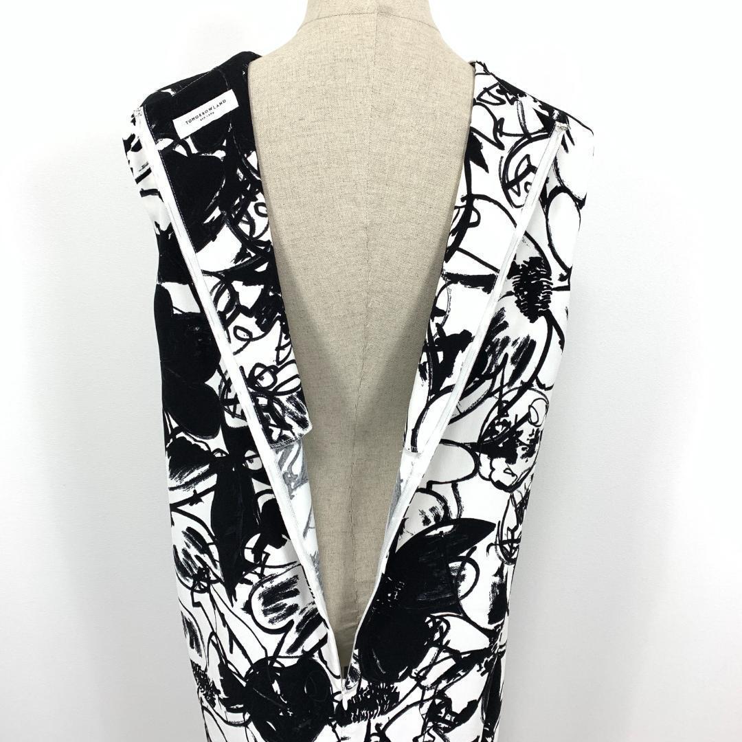 LA5520 トゥモローランド 総柄 ノースリーブワンピース ブラック系 36