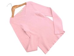 クリアインプレッション 薄手ニットトップス ベルスリーブ ピンク Vネック