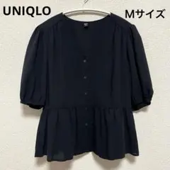 UNIQLO ネイビー 水玉模様 半袖ブラウス Lサイズ