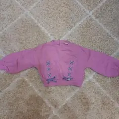 ホワイト レース薄手トレーナー ネイビーリボン付き 150