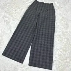 プラステ[S]上品ナチュラル◎ウールブレンド◎チェック柄クロップド丈ワイドパンツ