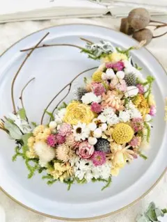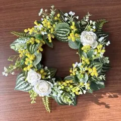 ミモザとレモンのフラワーリース 春リース ハンドメイドリース 玄関リース
