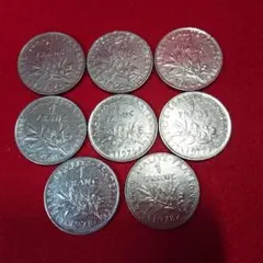 フランス 旧硬貨 フラン 20.1フラン 記念硬貨(第五共和政30年1F×2枚)