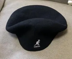 KANGOL ハンチング帽 L 黒と水色の波模様