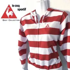 【ルコックゴルフ】le coq sportif ターコイズのフード付きジップアップパーカーとストライプ柄スカートL