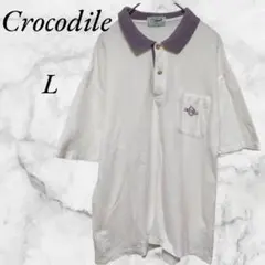 【クロコダイル】 長袖ポロシャツ ポロシャツ ボーダー 胸ポケット 紺 白 赤
