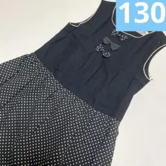 ひまわり柄ノースリーブワンピースと水玉ワンピースのセット130㎝