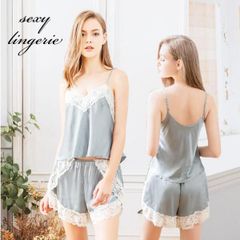 大人可愛い Vネック キャミソール ショートパンツ 上下セット 薄手 セクシー パジャマ2点セット バイカラー 韓国風