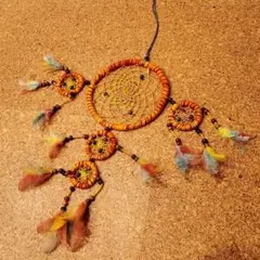 ネイティブ・アメリカンのお守りで、羽や網が悪夢を捕まえ、良い夢を呼び込む効果があります。北米先住民、特にオジブワ族に伝わる伝統的な魔除け、装飾品です。