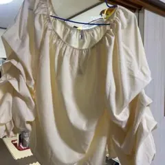 ネイビーの七分袖シャツ、Mサイズ、着丈62cm。