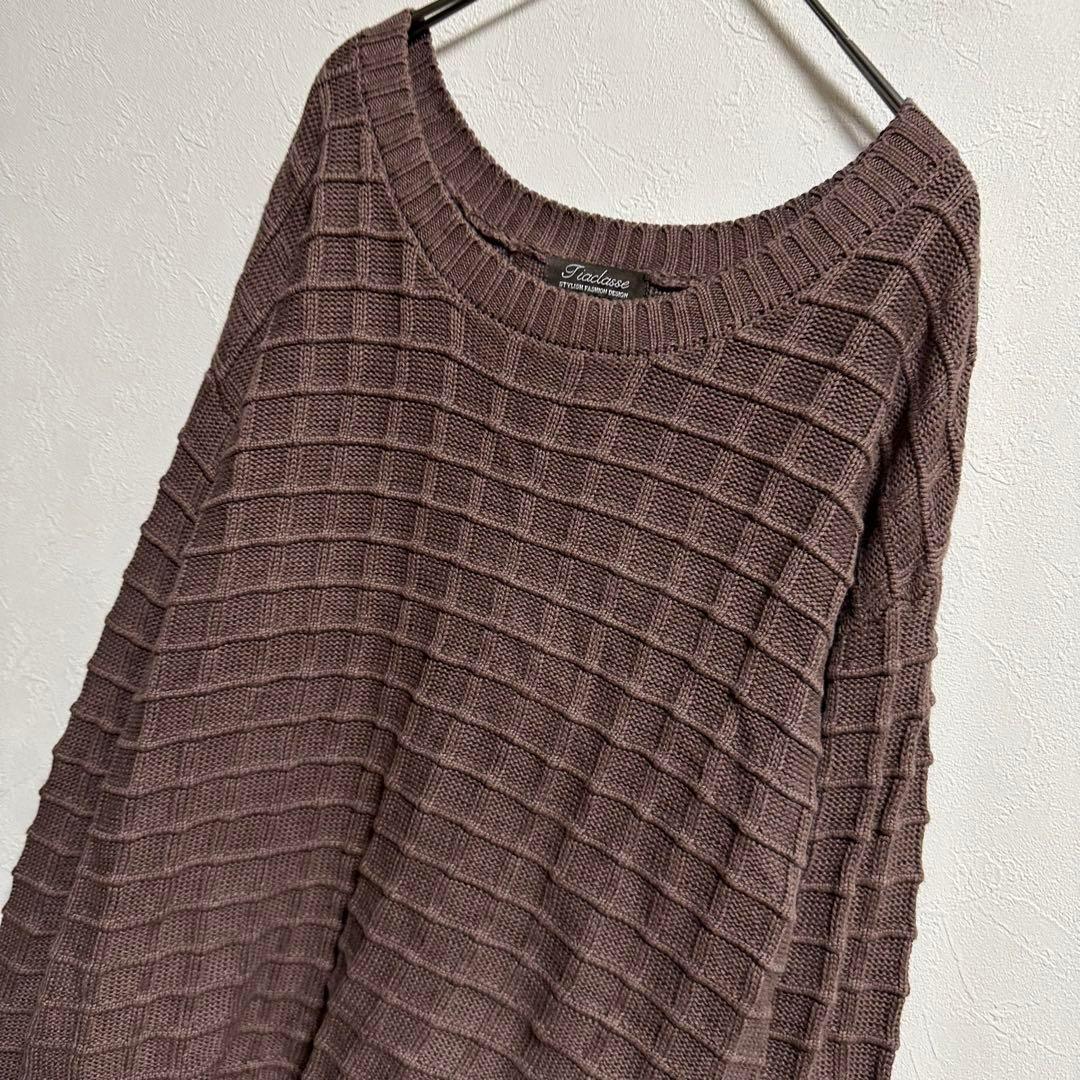 【ティアクラッセ】ニット ワッフル風 長袖 サイドスリット M