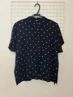 美品 UNIQLO ユニクロ 半袖 シャツ 白 ホワイト ドット 水玉 L