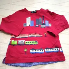 恐竜プリントの長袖Tシャツ、サイズ90。