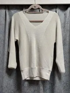 ・ デザイン: 深めのVネックリブ、シンプルな長袖トップス