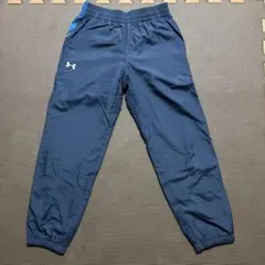 ネイビーのUnder Armourジャージパンツ、サイドポケット付きで快適なフィット感。