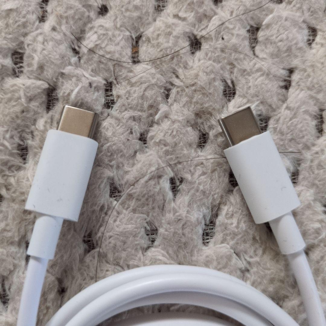 type-Cコネクタを持つホワイトの充電ケーブル。