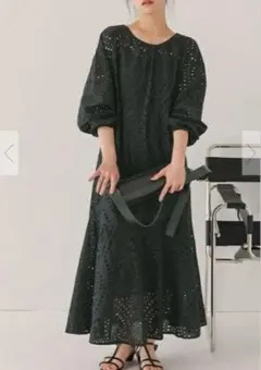 titivate select ロングワンピース 長袖 ウエストゴム 黒色 S