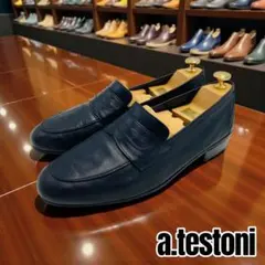 a.testoni アテストーニ ホワイトレザー スリッポンローファー 本革