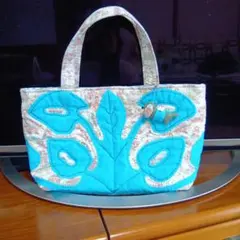 〈中古〉ハワイアンキルト 花柄 プルメリア トートバッグ