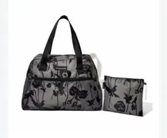 KEI Hayama PLUSの花柄ボストンバッグです。グレー地に黒い花柄が特徴で、大容量なので旅行やジムバッグとしてもお使いいただけます。目立った傷や汚れはなく、比較的きれいな状態です。