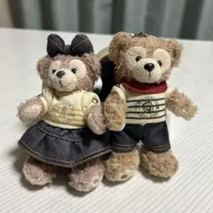 ダッフィーとシェリーメイのニットセーター付きぬいぐるみ、ストラップ付きで可愛いデザイン。