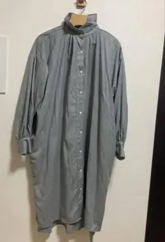 ギャレゴデスポート ノーカラー シャツワンピース ウール ブラウン フランス製