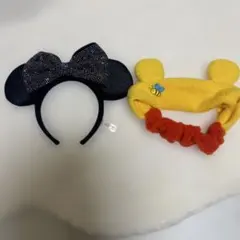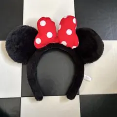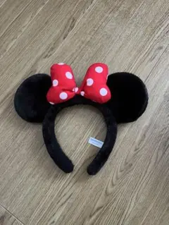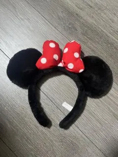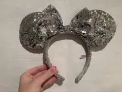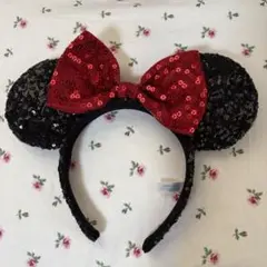 ピンクのスパンコールで装飾されたミニーマウス風カチューシャ、リボン付きで華やか。