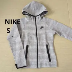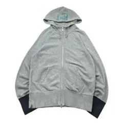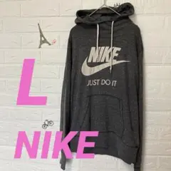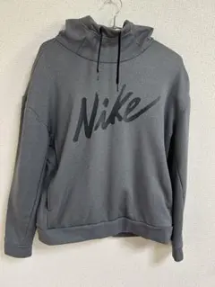 フロントに大きなピンクのNIKEロゴが特徴のグレーのパーカー。