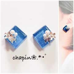 レジン カボション スクエア ピアス ハンドメイド