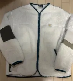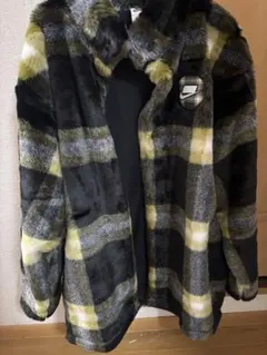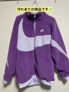 Nikeのベージュボアジャケット、フロントジッパーと襟付きで暖かさとスタイルを兼ね備えています。