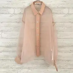 色味が薄いサーモンピンクで品があり綺麗で、ボタンも高級感があります。透け感はさほど強くないので、下に重ね着をすればオールシーズン着回せます。