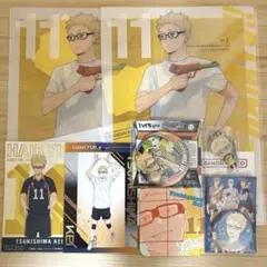 月島蛍 缶バッジ(2種)&ポストカード&コースターの4点セット