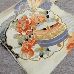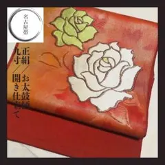 ◆1523◆名古屋帯 アンティーク帯 薔薇の花籠 リメイク用 着物帯 和装着物