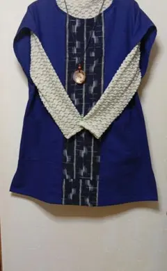 古布リメイク 着物リメイク 絣 藍染め プルオーバー ベスト ポンチョ