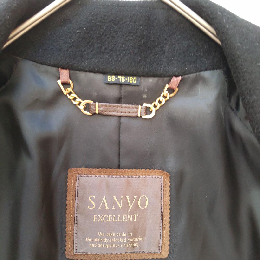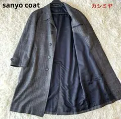 SANYO サンヨーコート カシミヤ混 メンズ ロング ステンカラーコート 黒