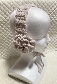 手編みのイヤーマフラー、耳当て、ヘッドドレスです。