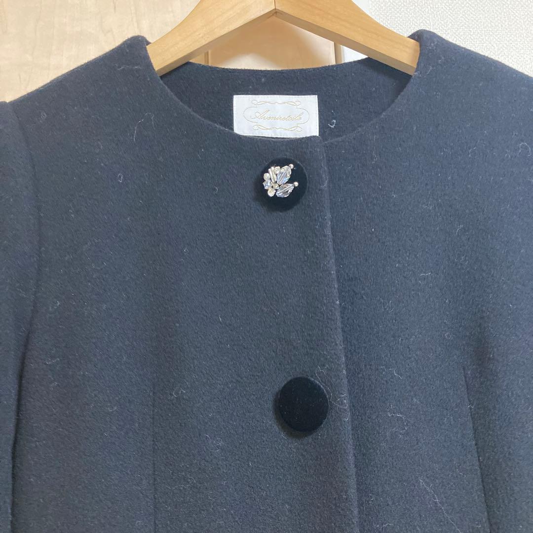 新品未使用アベニールエトワール 黒ノーカラーロングコートウール100イタリア生地