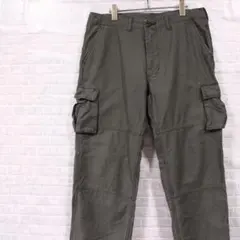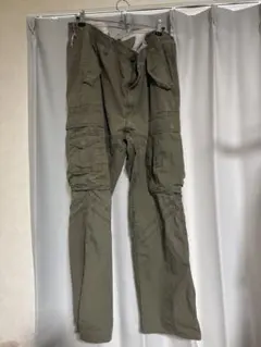 ミリタリーパンツです。ダメージの入った太めのミリタリーパンツ。圧倒的重厚感と色味とダメージがめちゃくちゃ渋い一枚だと思います。安いカーゴパンツとは違く厚みがしっかりしています。