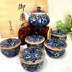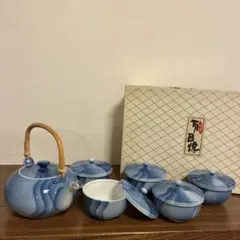 青と白のグラデーションが美しい急須と茶碗のセット。