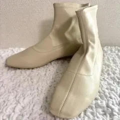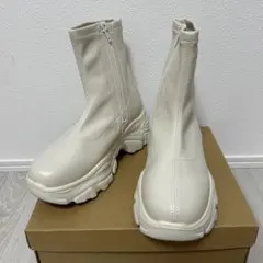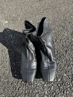 合成皮革製のブラックブーツ、スタイリッシュなデザインで、Mサイズ。