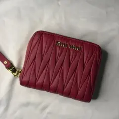 MIU MIUのコインケースは、シンプルながらも洗練されたデザインが特徴です。ピンクのレザーにハート型の装飾が施されており、可愛らしさと高級感を兼ね備えています。