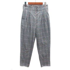 ハイウエストデザインのベージュテーパードパンツ、サイドポケット付き。