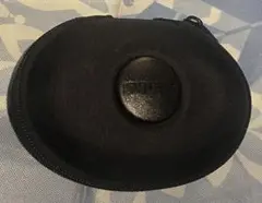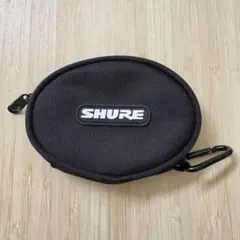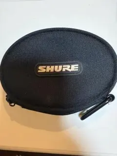 SHUREの黒い布製イヤホンケース、持ち運びに便利。