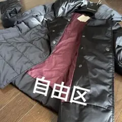 自由区のネイビーダウンコート、ファー付きフードが特徴。手首にも折り返しファー付きで温かいです。