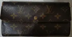 ベージュのパテントレザー製、モノグラムデザインの長財布。