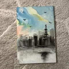 オオカミと月の鉛筆画ポストカード 鉛筆画 狼