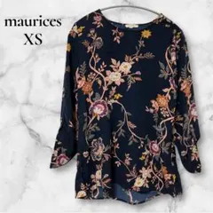 えんじ色の花柄スタンドカラーシャツ、黒のアクセント付き。