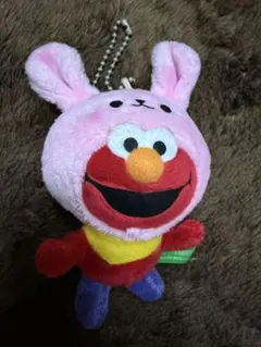 ユニバーサルスタジオのセサミストリート星形キーホルダー、赤色の合成皮革製で、エルモのデザインが特徴。