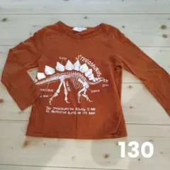 恐竜プリントが特徴のホワイトTシャツ、135/140サイズ、クルーネックデザイン。