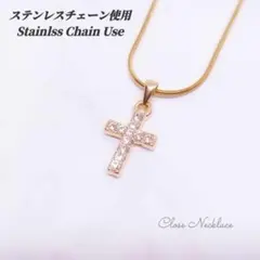 ミニクロス ピンク ステンレスネックレス ステンレスチェーン クロスネックレス